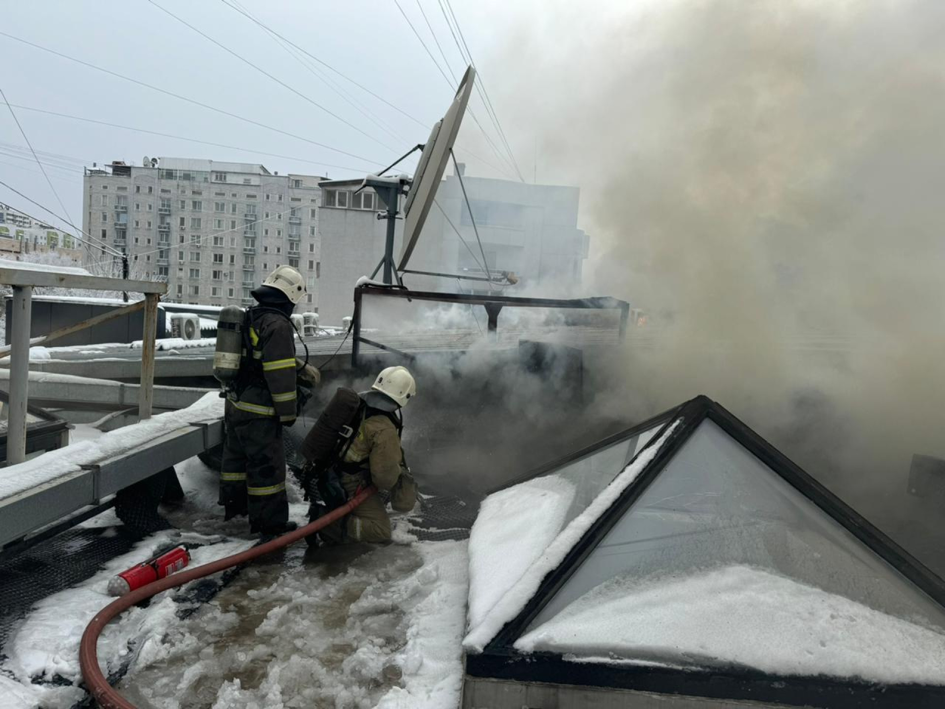 Сообщается, что в эти минуты огнеборцы Алматы тушат возгорание кровли четырехэтажного административного здания.