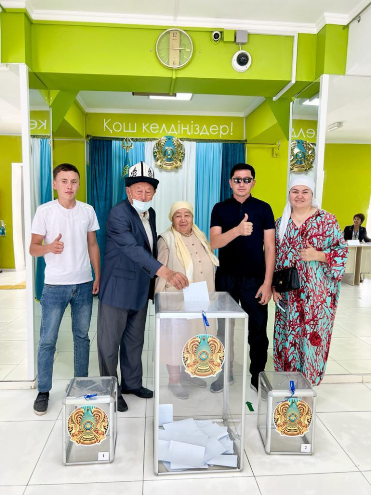 Избирательные участки с семьями посетили общественные деятели, работники культуры, спорта, образования. Свой голос отдала и 100-летняя жительница Шымкента Сара Ибрагимкызы. Она одна из самых пожилых избирателей в городе. Из-за состояния здоровья бабушка не смогла посетить участок, и урну для голосования ей привезли домой.