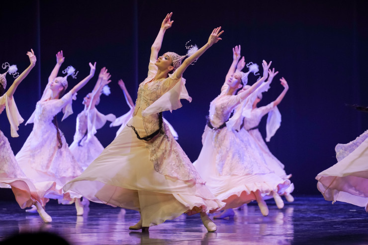 Так, были представлены хореографические сюиты "Времена года", "Қыз қайың" (Березки), "Серiлер салтанаты", "Ата толғауы" (Традиции старины), "Сый-сияпат" (Сувениры), "Нұр шашу", "Балбырауын", "Қыз сағынышы" (Девичья печаль), "Кербез сұлу" (Чарующая прелесть), "Әсем қоңыр", "Ұлы дала" (Великая степь), "Ақ қыз" (Пленительная нежность), "Тәңір сыйы – Ақ жол", а также дуэт из спектакля "Қозы Көрпеш – Баян Сұлу".