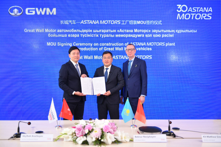 "Астана Моторс" подписала меморандумы с китайскими концернами Chery Automobile Company, Changan International Corporation, Great Wall Motor и к 2025 году планирует построить в индустриальной зоне Алматы мультибрендовый завод по производству автомобилей Chery, Changan и Haval.