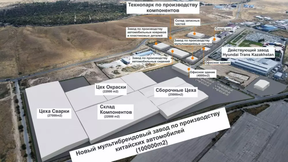 Будущее предприятие – 100-процентная собственность компании "Астана Моторс". Выпускать авто популярных китайских брендов здесь будут по лицензионным соглашениям.