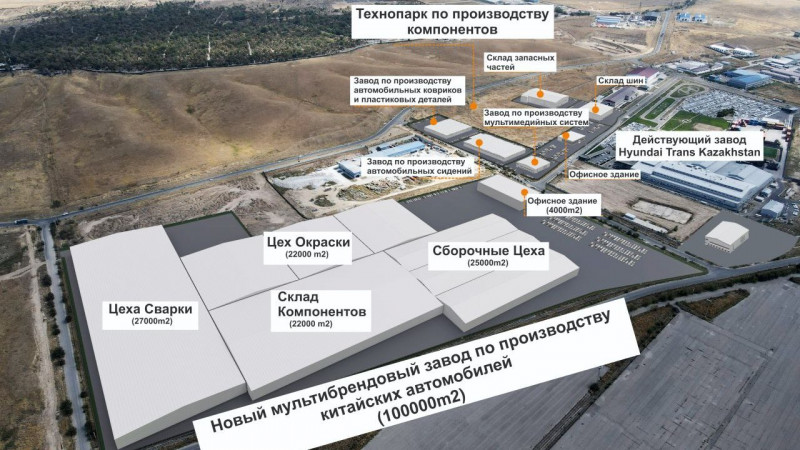 "Астана Моторс" подписала меморандумы с китайскими концернами Chery Automobile Company, Changan International Corporation, Great Wall Motor и к 2025 году планирует построить в индустриальной зоне Алматы мультибрендовый завод по производству автомобилей Chery, Changan и Haval.