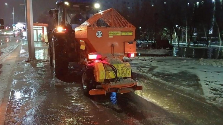 В связи с крайне неустойчивыми погодными условиями, обильными осадками в виде дождя и перепадами температуры на улицах образуется гололед. Для безопасного передвижения горожан дороги, тротуары и улицы посыпаются песко-соляной смесью.