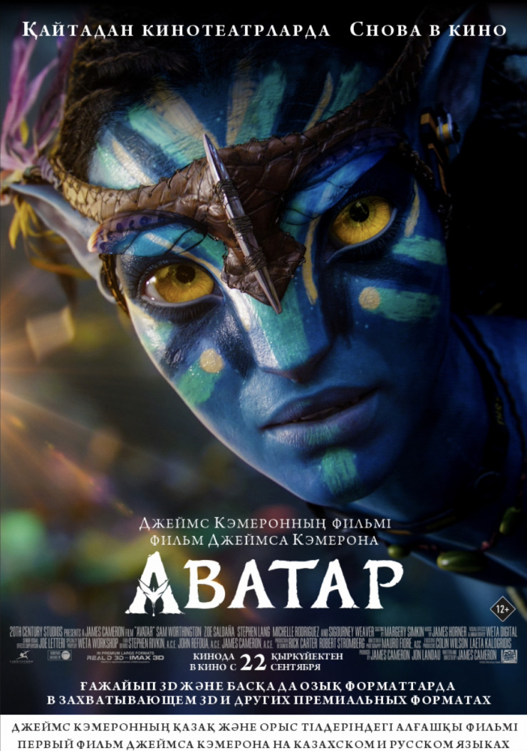 Отметим, что 22 сентября в отечественных кинотеатрах снова можно будет посмотреть первую часть фильма "Аватар", полностью дублированную на казахский язык.