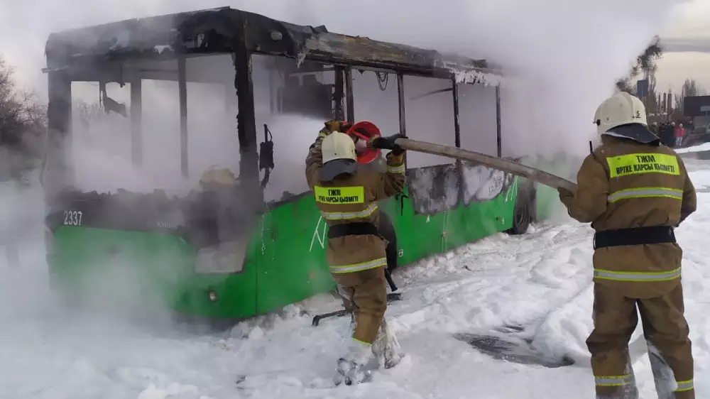 В ДЧС Алматы сообщили, что в 8:27 пожарные выехали на вызов на угол улиц Толе би и ВОАД, где они обнаружили горящий автобус ЛиАЗ с площадью горения в 25 квадратных метров. В момент возгорания в салоне не было пассажиров.