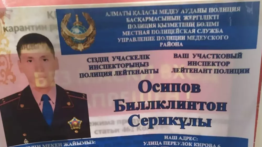 В Алматы живет человек с необычным именем Биллклинтон Осипов. Молодой человек работает в полиции. В WhatsApp рассылают фотографию буклета с участковым инспектором, корреспондент Tengrinews.kz отыскал тезку экс-президента США.
