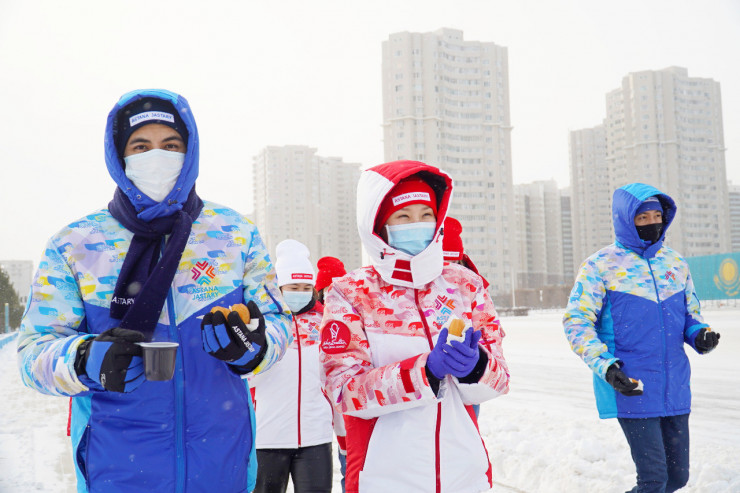 "Сегодня, несмотря на непогоду, волонтеры вышли поддержать акцию "30 добрых дел" и помогли жителям и гостям столицы, работникам ТОО "Астана тазалық", которые делают наш город чище, согреться горячим чаем, а также угостили не менее горячими баурсаками. Таким образом волонтеры подарили бодрость, хорошее настроение и просто согрели своим вниманием в этот морозный день. Всего было роздано 50 литров чая и 7 килограммов баурсаков", – сообщили в МРЦ "Астана жастары".