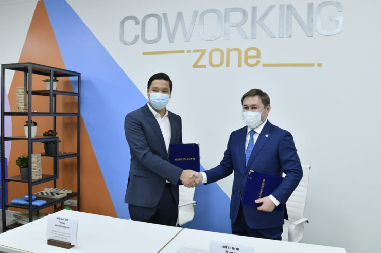 Ознакомившись с работой центра и пообщавшись с молодежью, аким города подписал меморандум о сотрудничестве с исполнительным директором Ассоциации юридических лиц "Конгресс молодежи Казахстана" Токтаром Болысовым.