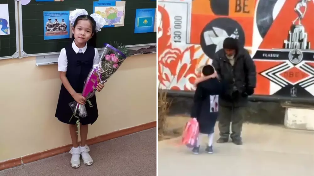 Второклассница из Актау Сабина Кенгесбаева из Актау растрогала казахстанцев, когда достала из своего кошелька мелочь и отдала ее просящему милостыню. Этот момент попал в объектив камеры прохожего, который поделился видеозаписью в социальных сетях.