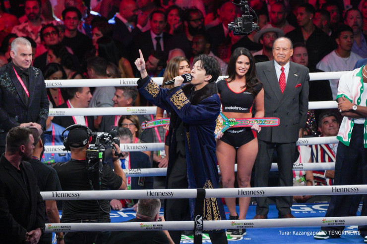 Перед началом поединка Димаш Кудайберген исполнил гимн Казахстана.