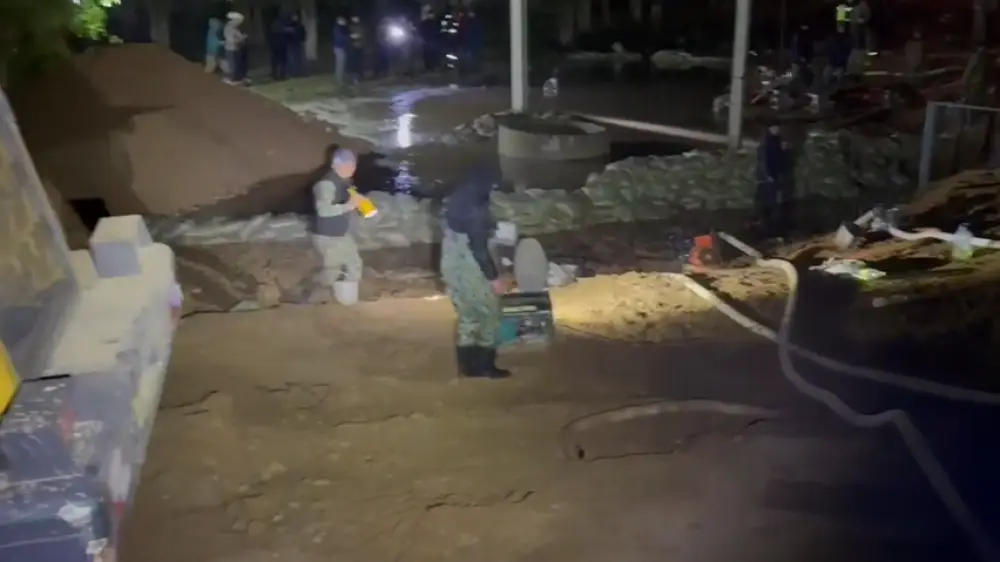 Дополнительную защитную дамбу срочно строят в Атырауской области Кадр из видео/пресс-служба МЧС
