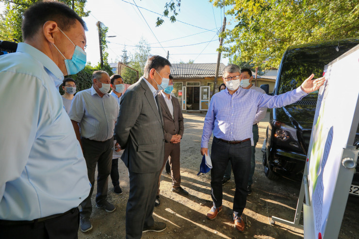 Объезд начался с ознакомления с ходом среднего ремонта дорог в микрорайоне Тастыбулак в Наурызбайском районе, где предусмотрены работы на 6 улицах общей протяженностью 8,6 километра. На сегодня проведен ремонт на улице Таутаган.