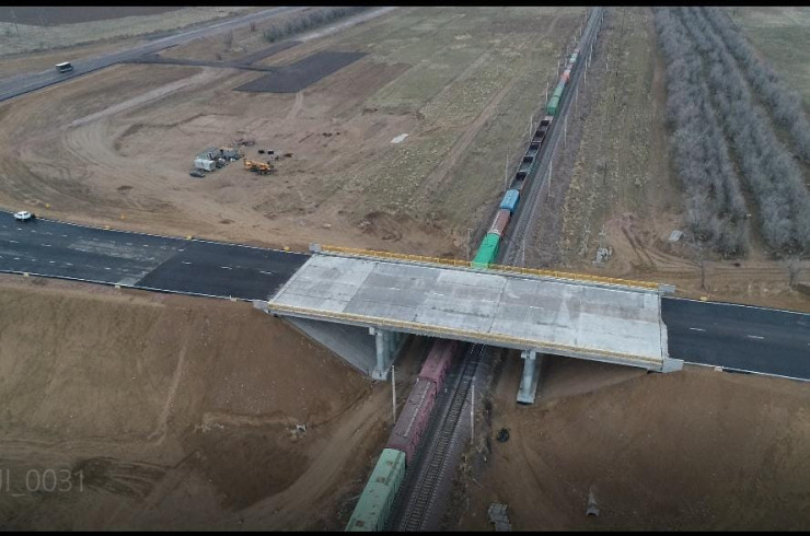 На участке раньше положенного срока были завершены работы по строительству 7 мостов и путепроводов, в том числе самого большого моста через реку Шу протяженностью 204 метра. Проектная стоимость - 15 миллиардов тенге.