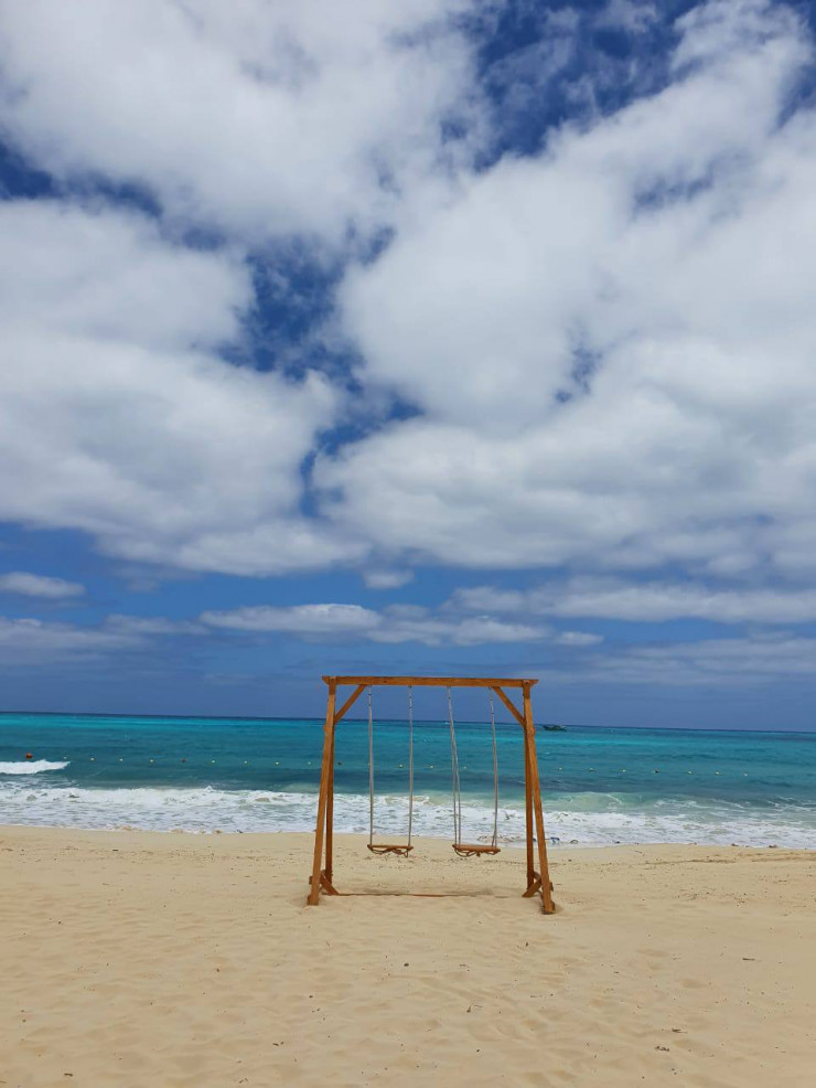 Просто представьте, как прогуливаетесь по нежнейшему белому песку, который ласково обнимает ступни ног, бархатное солнце дарит тепло без изнуряющей жары, а навстречу вам спешат волны, чей цвет меняется от лазурно-изумрудного до темно-синего.