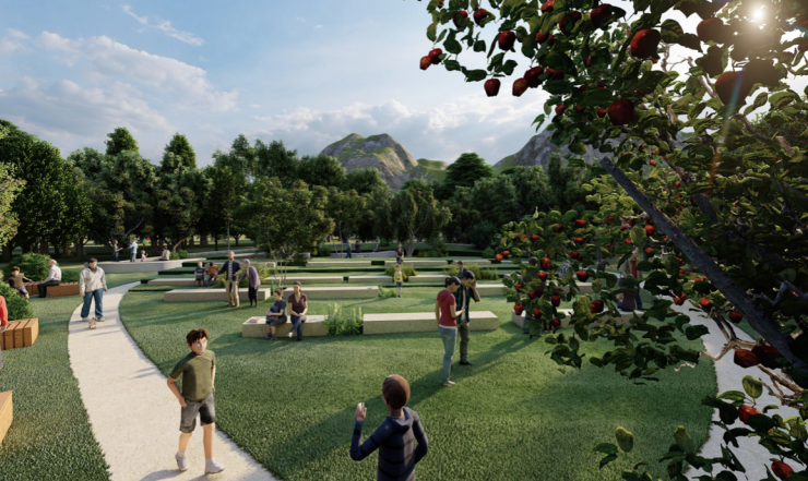 Площадь яблоневых садов в Алматы серьезно вырастет в ближайшие годы. Помогают этому процессу и проекты в инновационном формате зеленого строительства. Вскоре алматинцы и гости города смогут прогуляться среди 15 000 плодовых деревьев разных сортов, например яблони Сиверса, в садово-парковой зоне Eden Resort. Проект призван возродить знаменитые яблоневые сады вокруг Алматы.