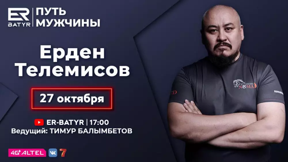 Ерден Телемисов - известный актер, каскадер и телеведущий. Он принял участие в съемках более 15 фильмов и сериалов, в том числе в его активе проект Netflix "Марко Поло", американский сериал "Воин" и американо-британский сериал "МакМафия".