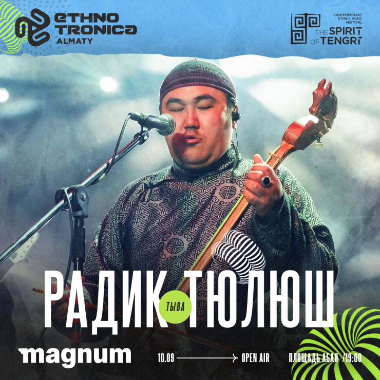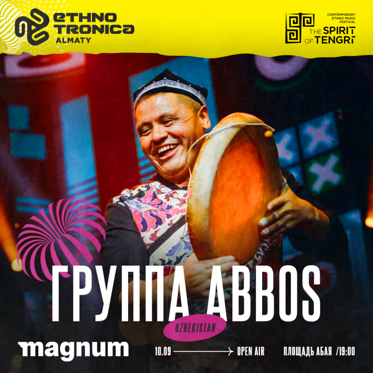 Международный мультикультурный проект The Spirit of Tengri представляет новый фестиваль Ethnotronica Almaty. Эксклюзивное красочное трехчасовое dance-шоу состоится 10 сентября на главной open-air-площадке города - площади Абая перед Дворцом Республики (Абая - Достык). Вход свободный. Генеральный партнер проекта ‑ Magnum Cash & Carry. Фестиваль проводится при поддержке акимата города Алматы в рамках Дня города.