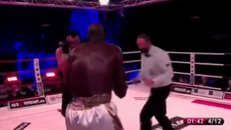 Kazakh Heavyweight Zhan Kossobutskiy (15-0, 14 KO's) scores a knockdown in the 3rd & then destroys Nigerian Onoriode Ehwarieme (18-2) in the 4th for a KO-4 victory to claim the vacant WBA International heavyweight title in Hamburg, Germany pic.twitter.com/0uOaKcHcms