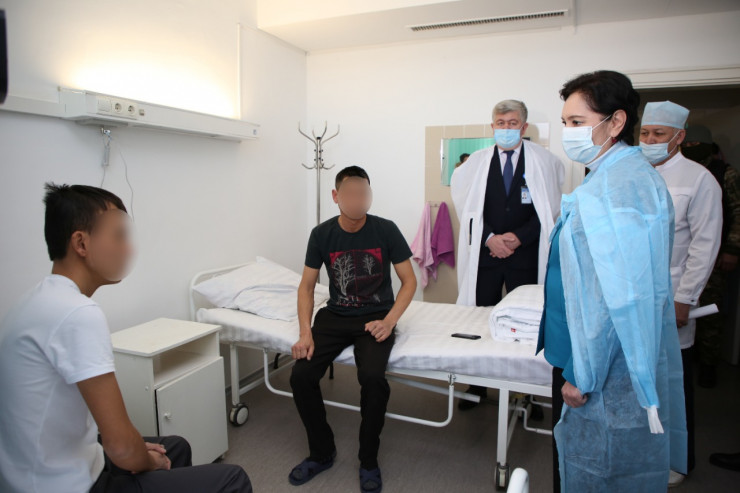 Глава региона навестила 5 полицейских и военнослужащего, проходящих лечение в больнице. Гульшара Абдыкаликова также высоко оценила заслуги медиков в чрезвычайной ситуации и пожелала им успехов в работе.