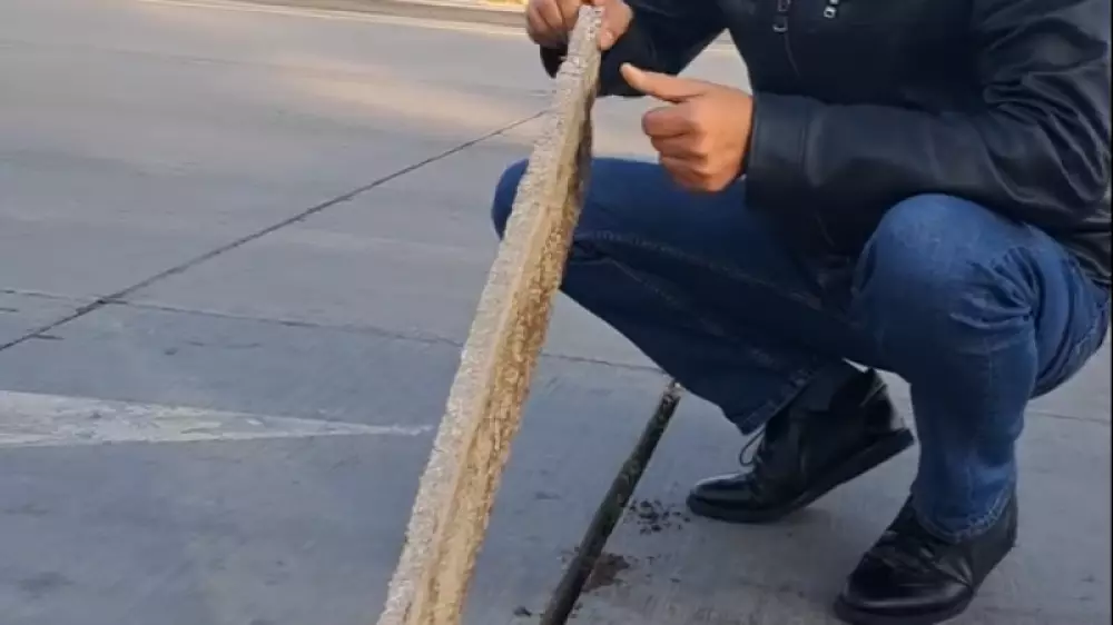 История дороги с пенопластом на "бетонке" до Хоргоса получила продолжение, передает корреспондент Tengrinews.kz. Ранее журналист Диас Нуракын на бетонной трассе Алматы - Хоргос заметил стыки, которые были соединены обычным пенопластом.
