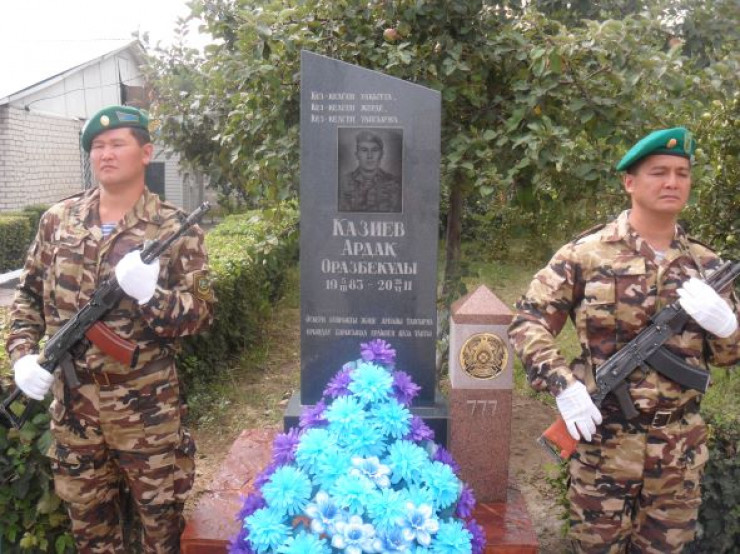 На Кегенском перевале далеко видным черным пятном от сгоревшего автомобиля выделяется место, где погиб боец десантно-штурмовой маневренной группы "Боран" сержант Ардак Казиев. Его имя навечно внесено в списки воинского коллектива и всей Пограничной службы КНБ Республики Казахстан, чьим героем на заре ее становления он стал.