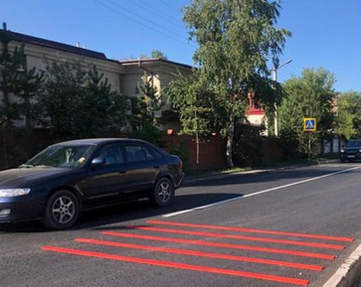 Наряду с этим перед пешеходными переходами применены шумовые полосы красного цвета, позволяющие сконцентрировать внимание водителей.