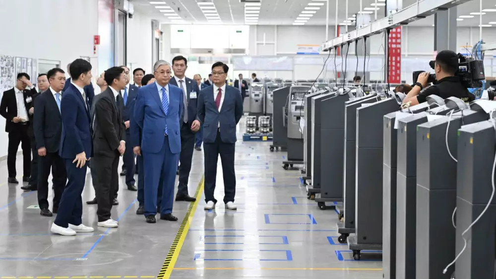 "Ознакомившись с производственной линией завода, Глава государства отметил необходимость обмена опытом в сфере финтех-услуг", - сообщает пресс-служба Акорды.