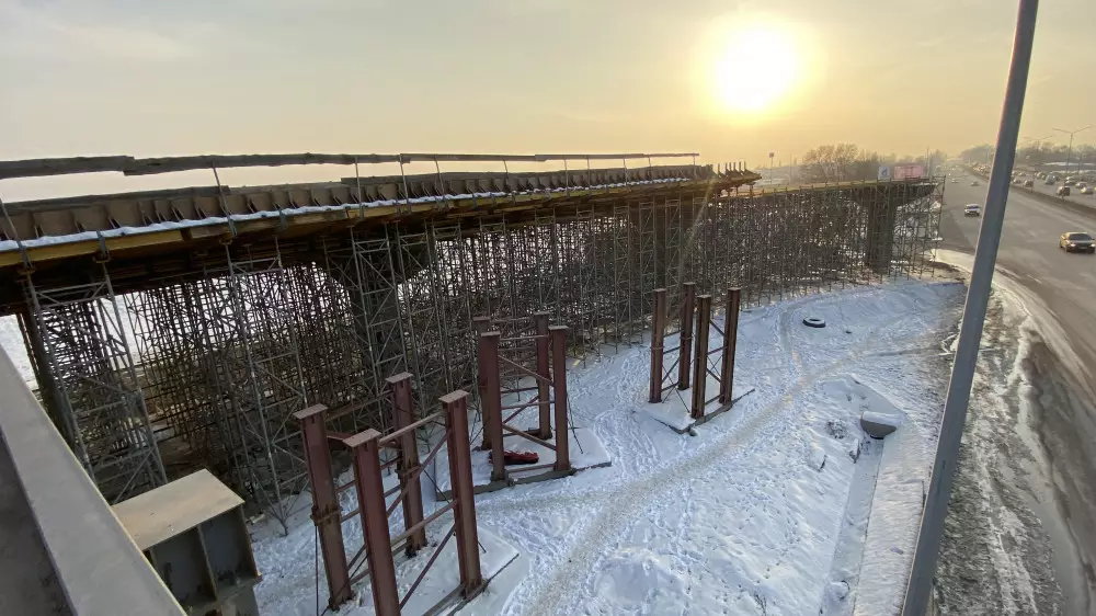 В АО "НК "Казавтожол" прокомментировали вопрос о недостроенной развязке в районе рынка "Алтын Орда", передает корреспондент Tengrinews.kz. Отметим, что в декабре прошлого года строители отрапортовали об успешном завершении строительства большого моста около рынка "Алтын Орда". Однако вторая эстакада на выезде из ЖК "Асыл Арман" и надземный пешеходный переход около поселка Райымбек так и остались недостроенными.