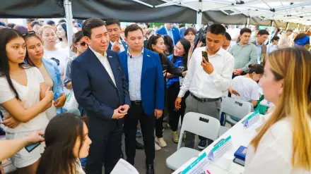 Ерлан Кошанов посетил столичную ярмарку вакансий, поговорил с молодежью и потенциальными работодателями.