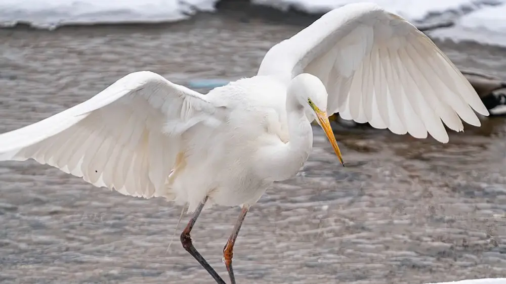 Как рассказал фотограф Дмитрий Доценко на своей странице в Instagram, большие белые цапли останавливаются на Сайране на зимовку уже не первый год. В этот раз он увидел в полынье сразу пять птиц.