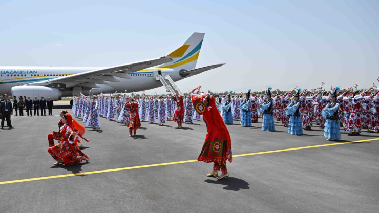 Пресс-служба Президента Казахстана распространила фото и видео встречи Токаева в аэропорту Душанбе.