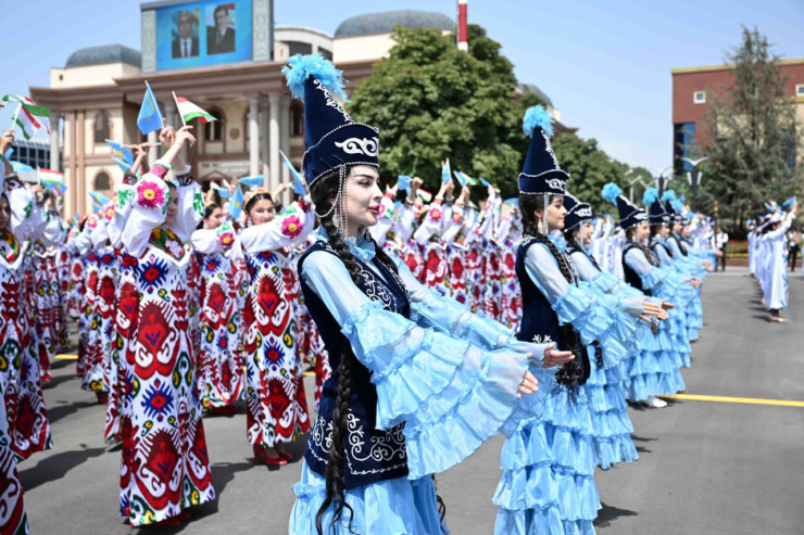 Десятки девушек в национальных костюмах поприветствовали Касым-Жомарта Токаева.