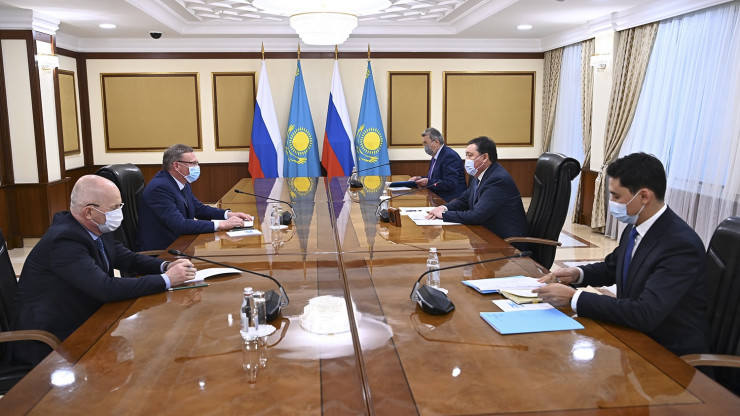 Премьер-министр Казахстана Аскар Мамин провел встречу с заместителем председателя правительства РФ Маратом Хуснуллиным и губернатором Омской области Александром Бурковым, передает Tengrinews.kz со ссылкой на Primeminister.kz.