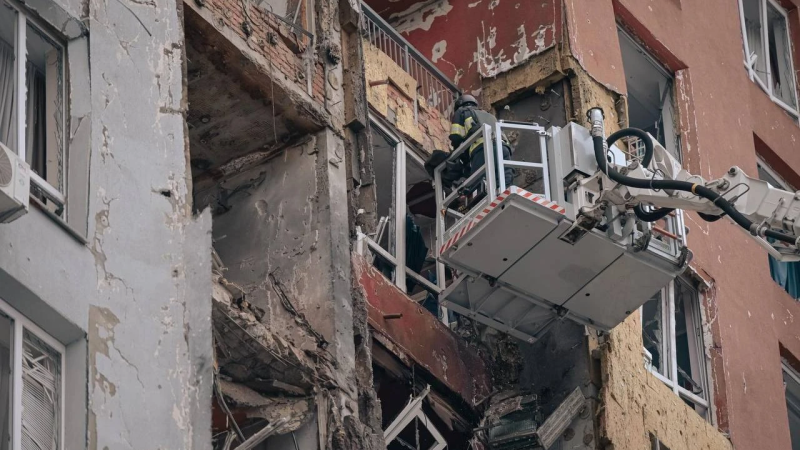 В Дарницком районе из эпицентра удара спасли почти 70 пожилых людей из пансионата. Спасатели проводят разбор завалов, демонтаж аварийных конструкций и обследование поврежденных зданий.