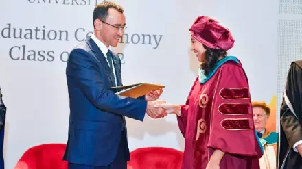 Спикер Сената Маулен Ашимбаев принял участие в церемонии вручения дипломов выпускникам магистратуры и докторантуры Высшей школы государственной политики Назарбаев Университета.