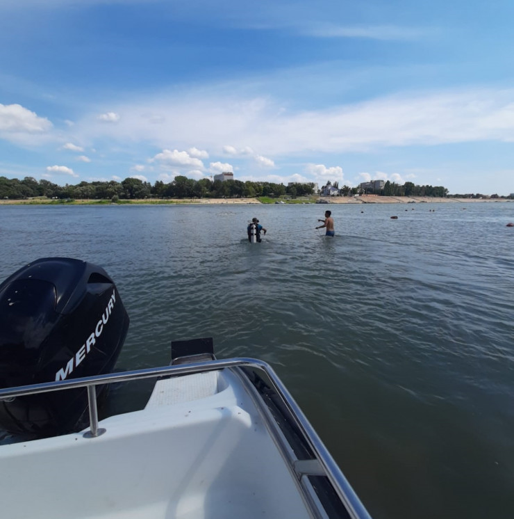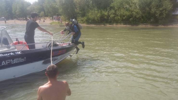 В поисках утонувшего водолазы и спасатели на лодках обследуют акваторию реки.