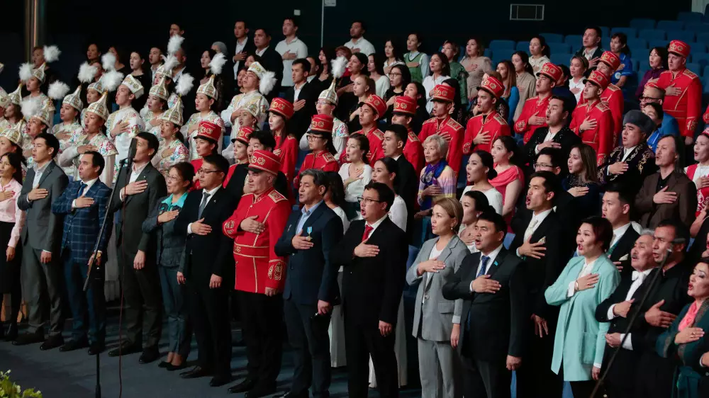 Как сообщается, около 400 человек собрались перед сценой филармонии и исполнили государственный гимн Республики Казахстан.