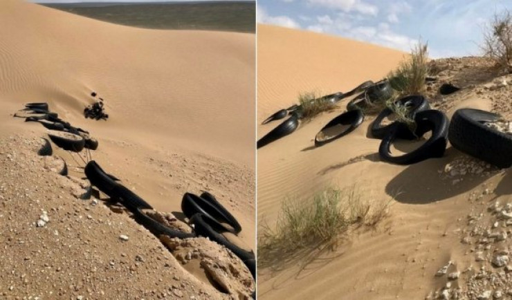 Покрышки от автомобилей местные жители обнаружили на песках Саускан у села Уштаган в Мангистауском районе, передает Tengrinews.kz со ссылкой на "Ладу".