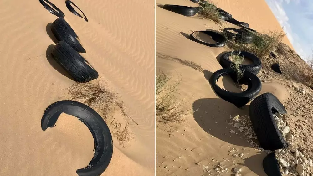 Покрышки от автомобилей местные жители обнаружили на песках Саускан у села Уштаган в Мангистауском районе, передает Tengrinews.kz со ссылкой на "Ладу".