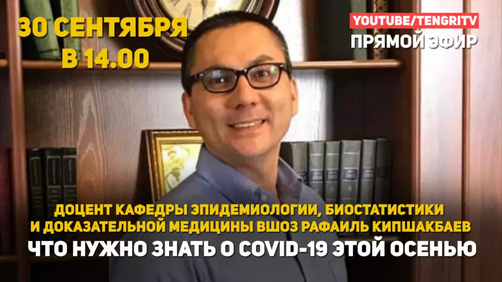 Доцент кафедры эпидемиологии, биостатистики и доказательной медицины ВШОЗ Рафаиль Кипшакбаев отвечает на вопросы зрителей в прямом эфире на Tengri TV.