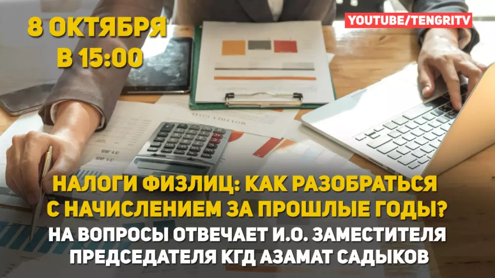 Сегодня в прямом эфире на Tengri TV мы поговорим о налогах для физических лиц. Очень много вопросов по начислению налогов, в том числе по налогам на имущество и транспорт, которые уже давно проданы.