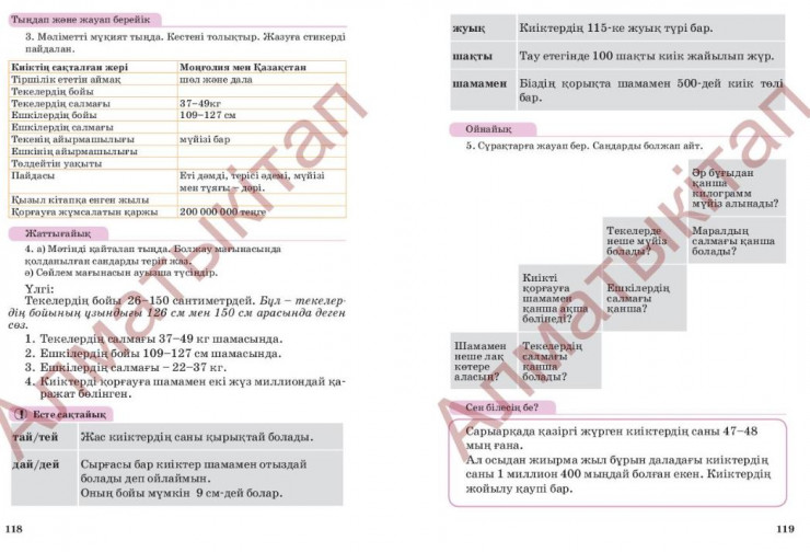 Ошибки найдены в учебнике по казахскому языку для четвертого класса издательства "Алматыкітап" 2019 года. В разделе о сайгаках указываются недостоверные данные о животных. Об этом корреспонденту Tengrinews.kz сообщил читатель портала.