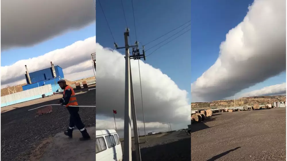 "Это метеорологическое явление образуется в результате оттока холодного воздуха от холодных фронтов. Под действием потока от предстоящей бури воздух поднимется вверх, застывает и принимает форму цилиндра. Это довольно не характерное для наших местностей явление, и увидеть его можно крайне редко", - отметили в РГП "Казгидромет" по Карагандинской области.