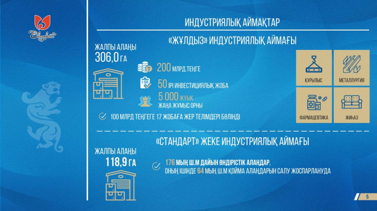 "Шымкент занимает первое место в республике по индексу роста инвестиций. За пять месяцев объем инвестиций увеличился на 29,2 процента и достиг 131,1 миллиарда тенге. К концу года планируется достичь 500 миллиардов.