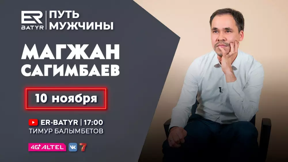 Новый гость проекта ER-BATYR - известный путешественник и исследователь Магжан Сагимбаев. Он расскажет о том, как ему удалось побороть игровую зависимость, как он оказался один без воды в пустыне, а также о том, за какие качества он особенно ценит свою маму.