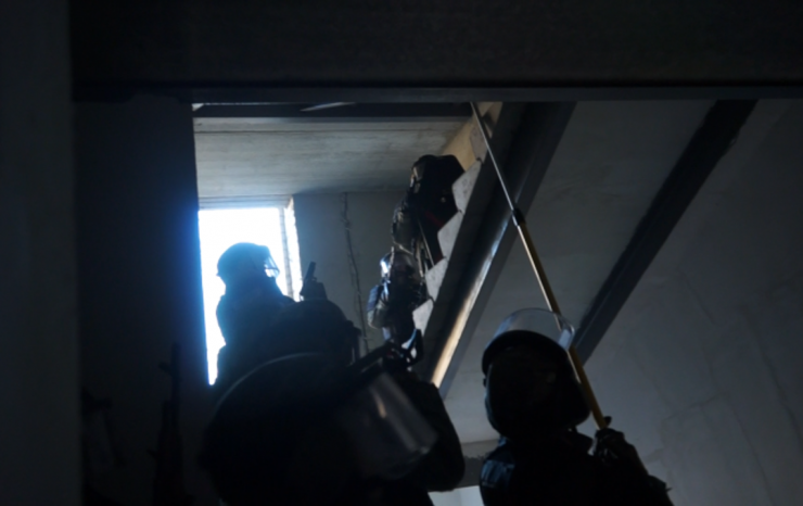 За эти доли секунды группа на лестничном пролете стремительным броском преодолела баррикады и нейтрализовала преступников, уничтожив четверых и ранив двоих.