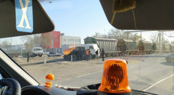 В Мангистауской области произошло ДТП с участием КамАЗа и товарного поезда, передает корреспондент Tengrinews.kz.