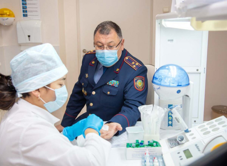 Эстафета донорства от Министерства внутренних дел передана сотрудникам по противодействию наркопреступности Департамента полиции Нур-Султана, дальше в ней примут участие полицейские всех регионов страны.