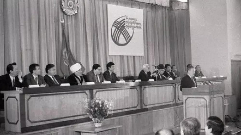 Пресс-служба Елбасы опубликовала архивное фото Нурсултана Назарбаева со Всемирного курултая казахов в 1992 году, передает Tengrinews.kz.