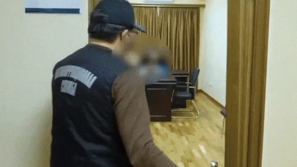 На кадрах опубликованного ролика видно, как антикоррупционщики заходят в здание акимата Талгарского района, а далее - в кабинет акима Серикжана Ерекешева. Сотрудники Антикора и СОБРа также врываются в одно из других помещений, где сидят мужчина и молодая женщина. Борцы с коррупцией достают из голубой папки, лежащей на столе в кабинете, сверток бумаги. В нее были завернуты несколько десятков 20-тысячных купюр в сумме более одного миллиона тенге.